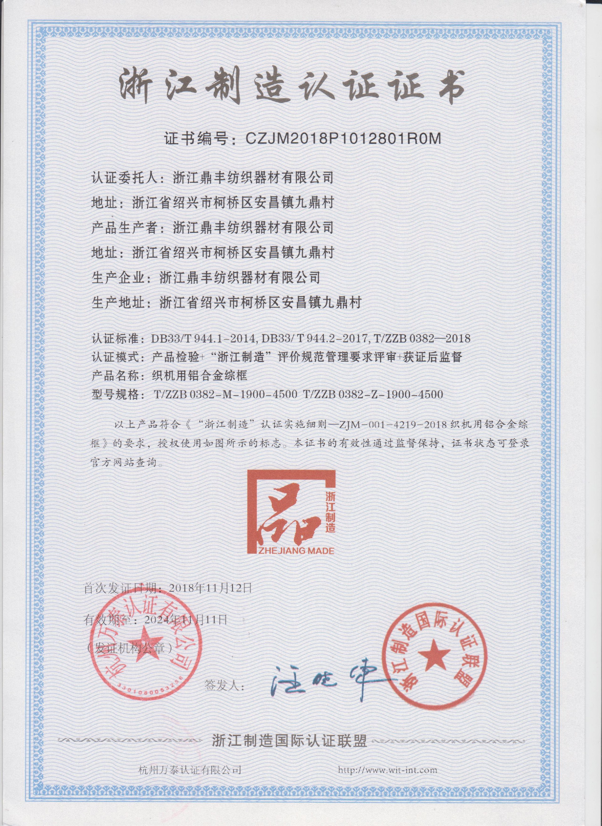 1、貴公司是一家專業(yè)生產(chǎn)各類無(wú)梭織機(jī)鋁合金鋼筘、綜框、鋼片綜、停經(jīng)片、經(jīng)軸、織軸和卷布輥等產(chǎn)品及配件的民營(yíng)企業(yè)。公司成立30多年迅速發(fā)展、占領(lǐng)市場(chǎng)的秘決是什么?余定雅:是高品質(zhì)的產(chǎn)品,完善的售后服務(wù)和大規(guī)模的生產(chǎn)能力保證了浙江鼎豐紡織器材有限公司的產(chǎn)品銷(xiāo)售量在國(guó)內(nèi)獨(dú)占鰲頭。為了與全球市場(chǎng)經(jīng)濟(jì)接軌,鼎豐紡